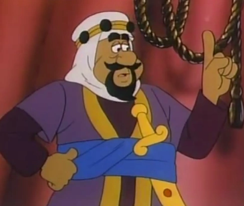 Appearing only in the third season episode "The Moor's Baby", this diplomat from the Middle East travels to the kingdom in Europe where the Smurfs' village is located. His first stop on his trip is the home of an old friend, namely the wizard Homnibus, traveling with bodyguards, his wife, and his infant daughter Zona Shiba. He also has brought with him the concept of Algebra, a new way of thinking (which would come in handy later in the episode). His Camel's left eye has been replaced with a priceless emerald which he is safeguarding, doubtless figuring that hiding it in the open would be less expected than actually concealing it.