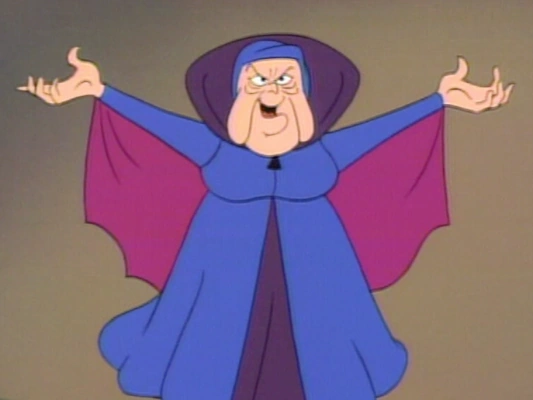 Like Lord Balthazar, she apparently comes from an aristocratic background, as evidenced by her dress and bearing, and that she lives in a castle and rides in a carriage. In addition to her pet toucan, she has a servant named Reeves who does her driving. Since Chlorhydris is not in the best physical shape for a woman her age, she usually relies on others to carry out her evil tasks, such as a fairy to wield her Ice Wand in "A Hug For Grouchy". She has a uncle named Herbert who never appeared, but gave her a magic horn which she used to remove all musical sounds from the world.