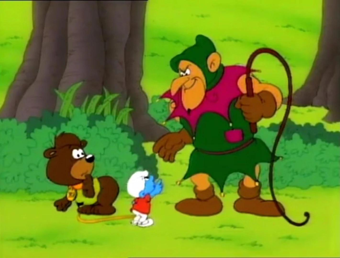 A circus owner captures Wild and the Smurflings after they find a ran away dancing bear.