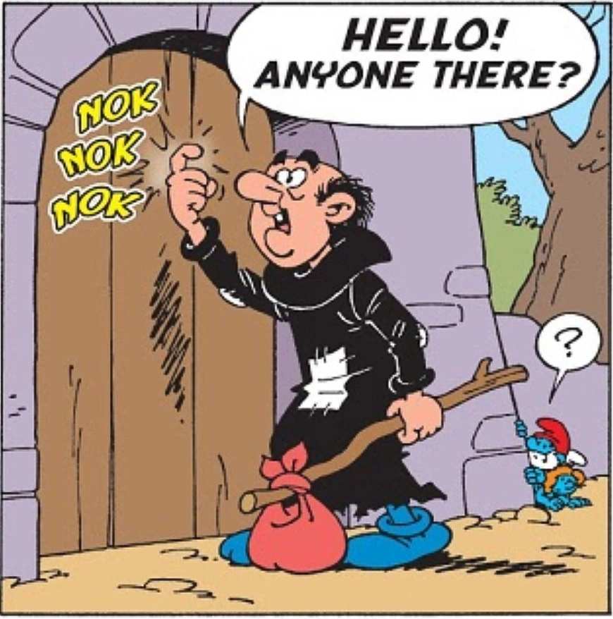 Presumably, Gourmelin has raised a family, for in another comic book story, Gargamel deals with three lookalike nephews.