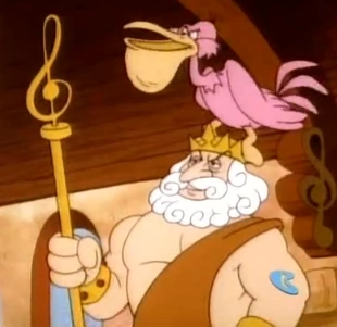 King Symphonium is the king of the seven seas that appeared in the cartoon show episode "Mutiny On The Smurf". He is a recluse who prefers to be left alone in his sea castle with his pet pelican Satchel Mouth and his music as he is an avid lover of music and built a beautiful crystal organ to serve as the ultimate musical instrument that used all the most loveliest sounds he could find.