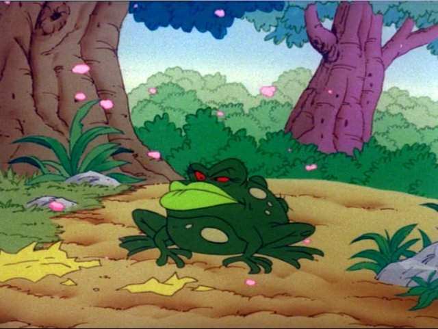 Meanwhile, an evil witch watches Poet from behind some tall grasses and realizes that he is just the person she is looking for. Transforming herself into a beautiful woman, the witch introduces herself to Poet as Allura the enchantress and, after hearing Poet describe his dilemma, offers him a magic orb that she says can lift spirits and inspire the uninspired with magic power simply by holding it in his hands. Poet gives the orb a try and soon he finds the oddest form of inspired words for his poem coming from the top of his head. Allura tells him to take the orb with him back to the village in case he would ever need its power of inspiration. Feeling that his friends could also make use of the orb, Poet takes Allura up on the offer and thanks her for the orb, telling her he hopes they would meet again someday. After Poet departs, Allura changes back to her real form, saying she is sure they will as she lets out an evil laugh.