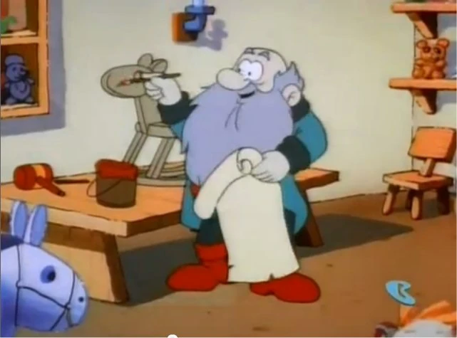 In another episode, Nicholas' elves were sick, and thus the Smurfs helped out in the making and delivery of his toys. It is in this episode that his magic sack was accidentally swapped out for one that Scruple was carrying.