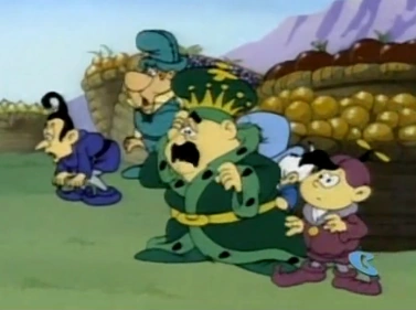 The Plentifuls are a race of small pudgy humanoids only a bit larger than Smurfs who reside in the Land Of Plenty. They are ruled by their king The Great Plentiful who is the keeper of the Horn Of Plenty which is the source of all their plentiful food which likely attributes to their rotund body shape. Because of their simple life with easy to acquire food, Plentifuls are very out of shape and even running short distances easily tires them out.