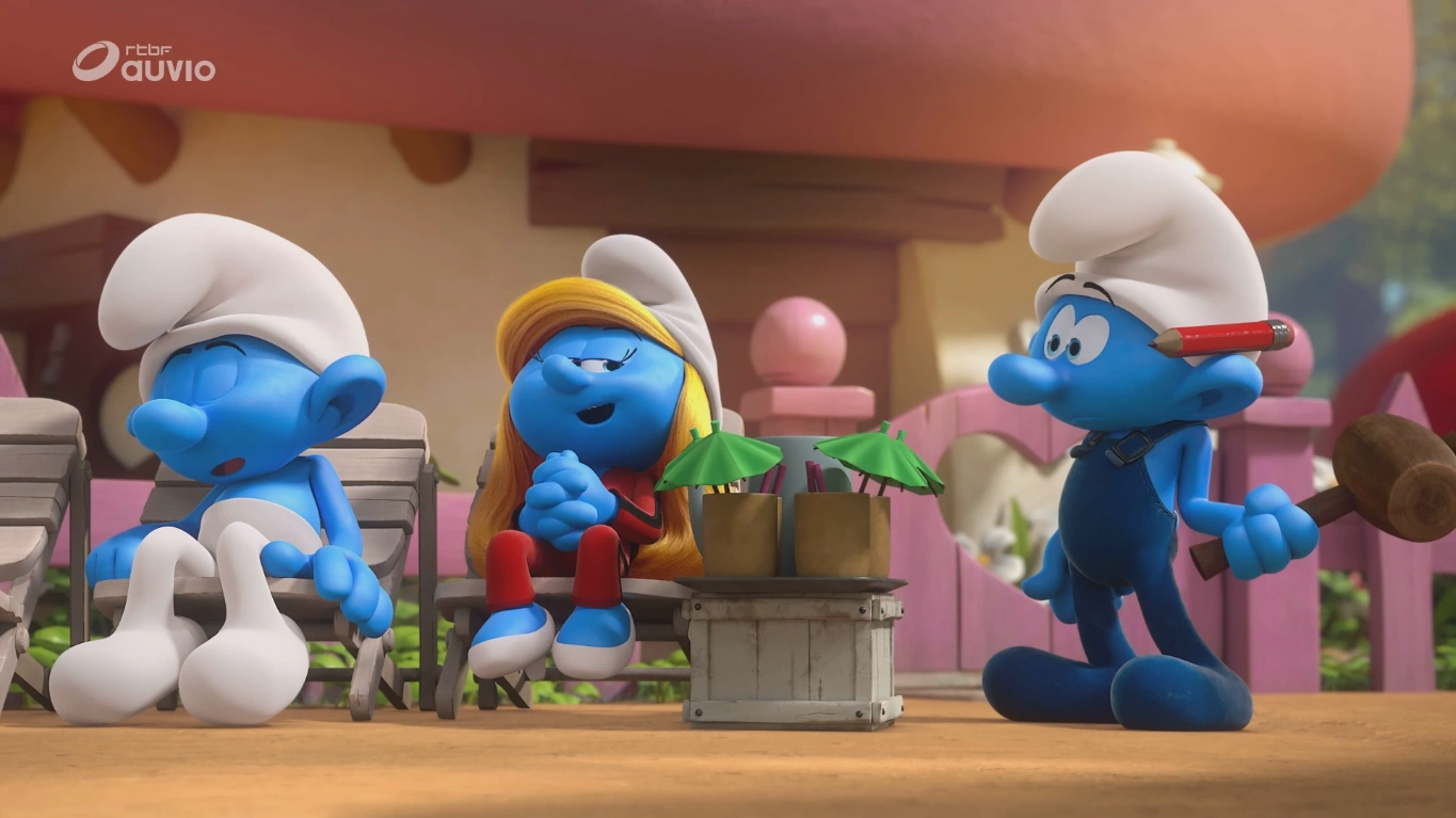 Smurfette cues the Smurf Band to play music while she and her three other relaxing Smurfs drink. Two other Smurfs see this and follow suite. Then, Farmer sees the two Smurfs and relaxes as well, and soon, everyone relaxes, leaving the village in a less active place.