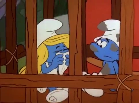 As Bigmouth carries his captive Smurfs with him in his cage, Farmer and Smurfette express their regrets of not having enough time to know each other better before they get turned into soup. It is then that Smurfette decides to reveal to Farmer that she's in love with a "secret admirer" who has asked her to marry him, and Farmer is about to reveal the secret of that "secret admirer" when Bigmouth's attention is suddenly turned to a patch of toadstools that he sees are good enough to eat. Farmer tells Bigmouth not to eat the toadstools, and when Bigmouth asks why not, Papa Smurf shows up with his little Smurfs to tell the ogre that one bite of the toadstools could cause him to die. Bigmouth decides not to eat the toadstools and lets the Smurfs he has captured go free because they have warned him about the toadstools.