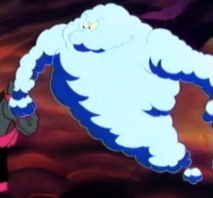 Stormy the Cloudmonster is a character who only appeared in the Season 7 episode "Sleepless Smurfs." He is a servant of the evil Dream Demon Morphio, who commanded him to chase the Smurfs. Stormy throws his thunderbolts at the Smurfs and they run away. Morphio touches Stormy to spare him as they disappear.