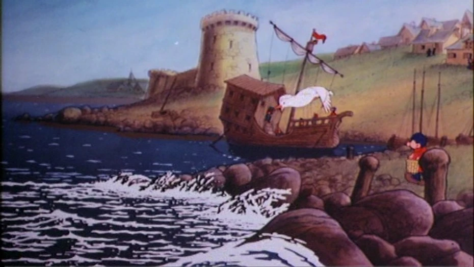 The seaport is referred to as Trominack in the original comic book version of the movie's story as well as in the United Kingdom English dub of the movie.