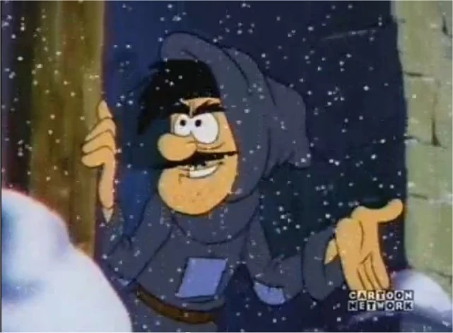 The Christmas Thief is the main antagonist of the cartoon special "'Tis The Season To Be Smurfy". He is a thief who appears in a human village around Christmas looking for rich people to steal their bags of gold from, usually through pickpocketing. During one such attempt, Sassette and Grandpa Smurf had spotted the thief, and the elderly Smurf threw an apple at him that knocked the bag of gold out of his hand while he disappeared into the crowd. Later on at night, while the Smurfs were passing through the town in order to reach Gustav's house to save his wife Elise, the thief had stolen a bag of gold from Hans' father and made a run for his hideout. However, Hefty had spotted the thief and chased him into the hideout with Brainy following him. By accident, the two Smurfs posed as spirits to frighten the thief into giving back the gold that he had taken, and so as Hans' father brought guards to Gustav's house to arrest him for the theft, the real thief confessed that he was the one responsible and turned himself in. Fortunately for the thief, Hans' father did not press any charges against him.