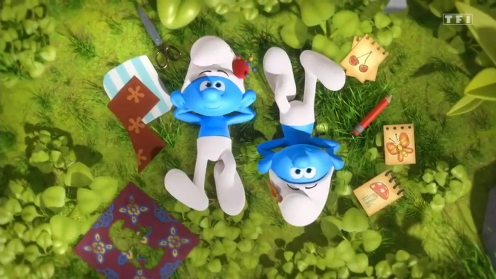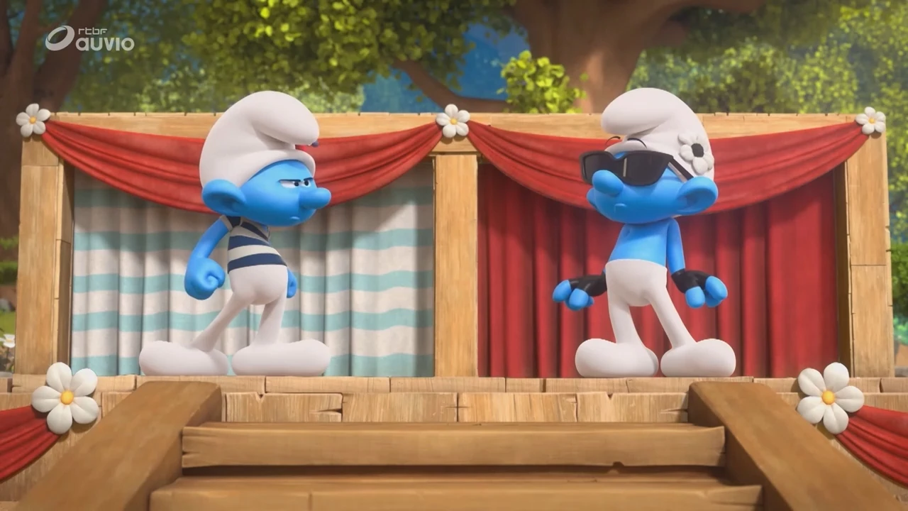 The two walk off, but Blossom mentions that there is still no outfit. Papa Smurf then takes off both of the model Smurfs' cherries and puts them on his hand. All of the Smurfs cheer for him and it attracts the attention of Smurfette, Blossom, and Lily. Brainy remarks how Papa Smurf is a true fashion genius as he grins and winks at the audience.