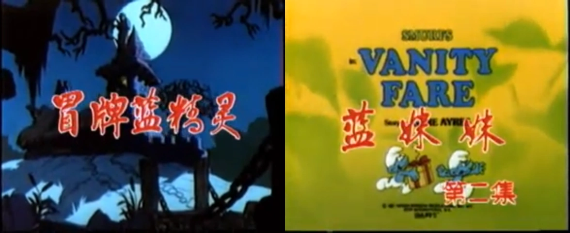 - In the Putonghua dub, which used the international two-parter version of the episode, the first part is interestingly named "冒牌蓝精灵" (The Fake Smurf) and the second part is named "蓝妹妹" (which is the Putonghua name for The Smurfette), and the translated episode name appeared on the first few seconds of the episode in the first part, or in the Vanity Fare episode card in the second part.