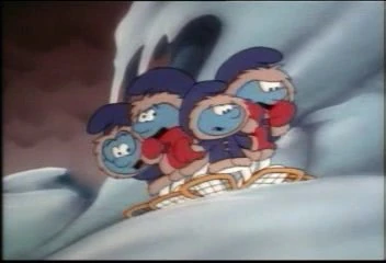 It is the dead of winter, and Snappy, Hefty, Brainy, and Clumsy are up in the mountains fetching a frost fern for one of Papa Smurf's experiments when Snappy gets too loud and Hefty shushes him, warning that he could start an avalanche. Of course, Brainy overdoes it by telling Snappy, "QUIET!" -- which ends up burying the four Smurfs in snow. As they dig themselves out of the heap, they hear a heartbeat and ice cracking nearby. It is a baby dinosaur that wakes up, scaring Brainy and sending the other three Smurfs cowering in fear until Snappy bravely befriends the awakened creature.