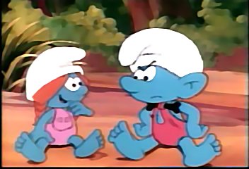 | ...which sends the four Smurfs scurrying for safety. |