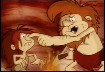 In a cave, the caveman teacher with his class huddle over a fire that they wonder how it got started. Grog, formerly on his own field trip, turns around and tells his captive Clumsy to "make sticks glow or else" before shoving him back inside his tunic. Appearing before the teacher again, he draws out a stick that suddenly bursts aflame, which amazes the teacher and his other students, making the teacher wonder how Grog has done that. Grog tells the teacher that if the teacher does what Grog says, maybe he will tell him.