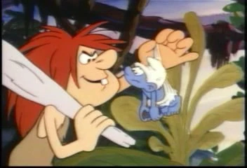 | Grandpa Smurf is about to become a dinosaur snack. |