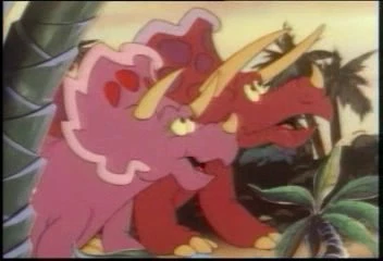 Papa Smurf tells the others that, now that they have brought Crinkles back to his own time, all they have to do now is reunite him with his parents. But soon they get an unfriendly greeting from a couple of very big dinosaurs, which sends the group of Smurfs scurrying for safety. In their flight, they end up running on top of a tar pit that they slowly sink into. As the Smurfs cry for help, Crinkles comes running toward the tar pit, eager to help them. Snappy warns his animal friend not to get stuck in there. Instead, Crinkles backs up and butts a big enough rock into the pit to make most of the tar go away. This leaves the Smurfs with less sticky stuff to deal with, but they end up with a big squabble over who's to blame for getting them into this situation in the first place.
