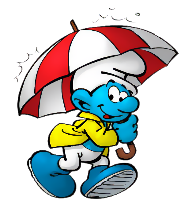 In the Smurf's Village game, he appears using the rain suit, boots and an umbrella appears after the weather smurfing machine is bought. The machine cost 1500 coins.