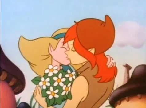 Woody and Laconia's wedding was an event hosted by the Smurfs for the woodelves Woody and Laconia in the cartoon show special "Smurfily Ever After". Papa Smurf was chosen to be the presiding minister who would unite the couple, Smurfette was the maid of honor, and Brainy was the best man. The event was originally held in Bluebell Dell and given a lavish presentation despite Woody's desire for the wedding ceremony to be simple and small. However, the event was crashed by Gargamel, who showed up at the location with his Ghoulliope to capture the Smurfs and send them to their doom. Laconia rescued Smurfette from the machine's entrancing music and the two of them worked together to free the other Smurfs from the music and to send Gargamel and Azrael flying into the wizard's muck pond. Although Smurfette saw and felt that the event was ruined by Gargamel's interference, it didn't stop Woody and Laconia's desire to be together, and thus the ceremony was moved back to the Smurf Village where the Smurfs and assembled guests watched the two woodelves make their vows and kiss each other.